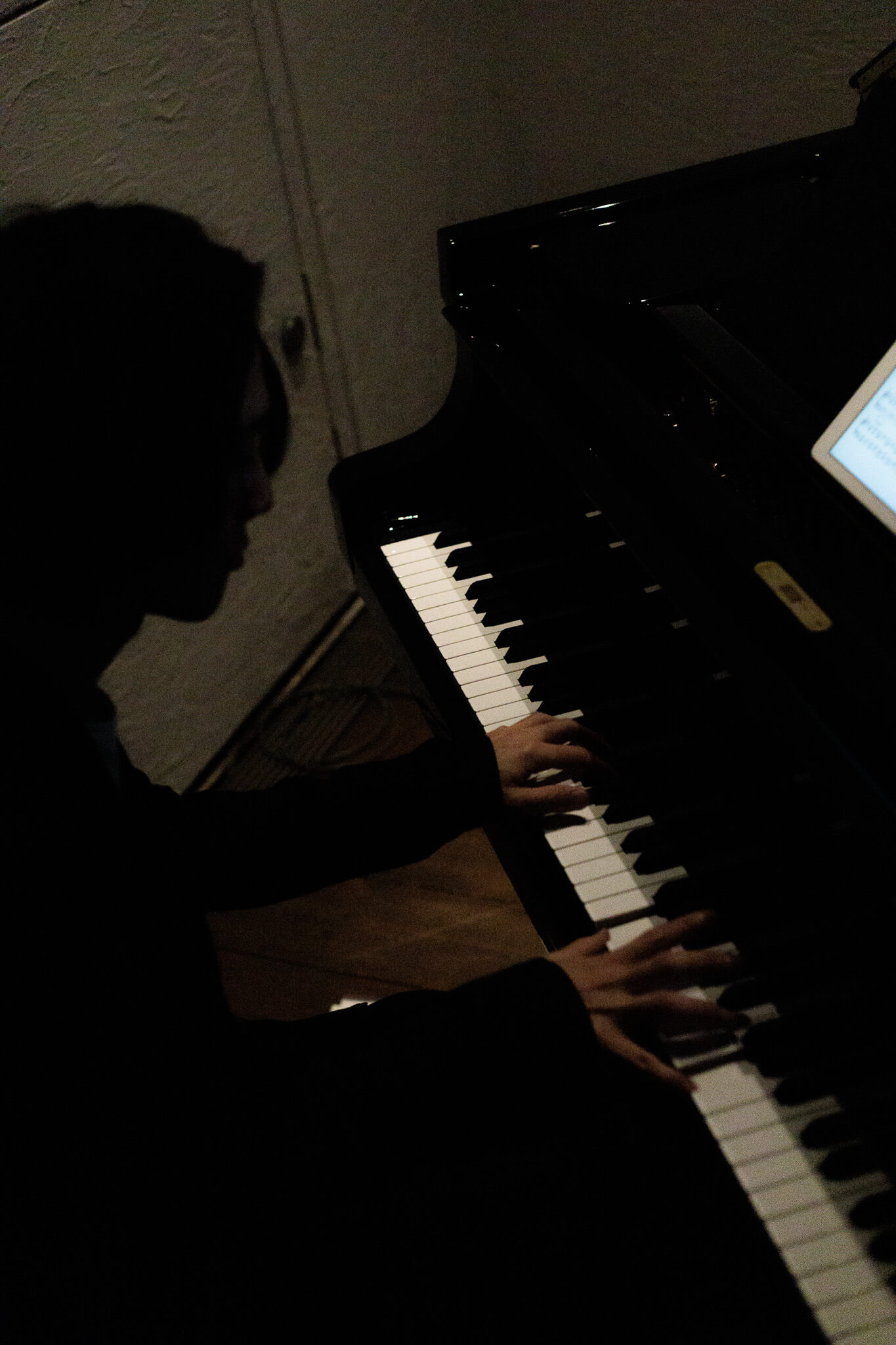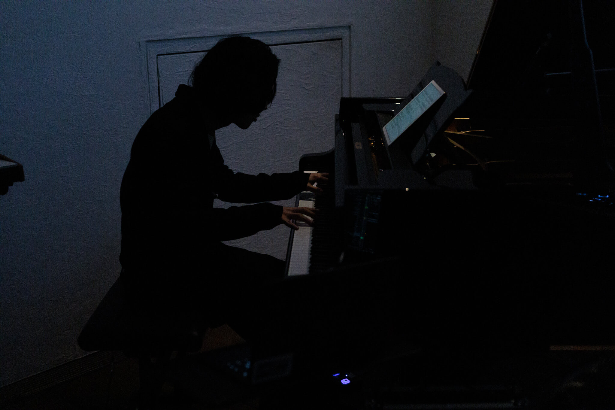 弦楽器が退場し、残ったWataru SatoとMoe Aoyagiがピアノ連弾でVa:Moe Aoyagi「Lullaby」を奏でる。写真に映るのは、旅の最後に待つ光なのだろうか。