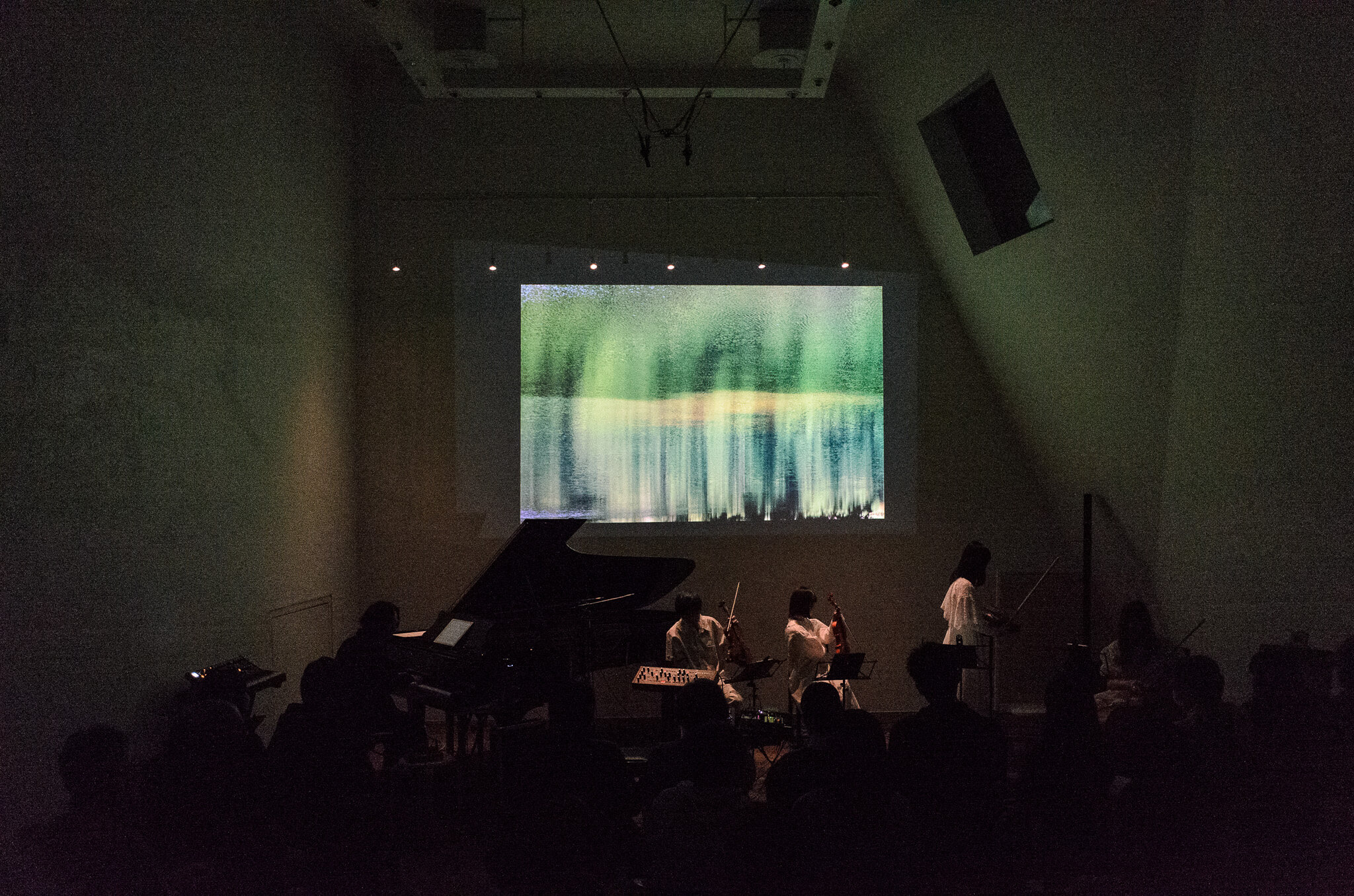 すごいものを体験してしまった…。呼吸するのもはばかられるような静寂の中でピアノ、ストリングカルテット、電子音が鳴り響くのを全身で感じる没入感。コンサートってよりも1つの映像音楽作品を観ているような感覚。