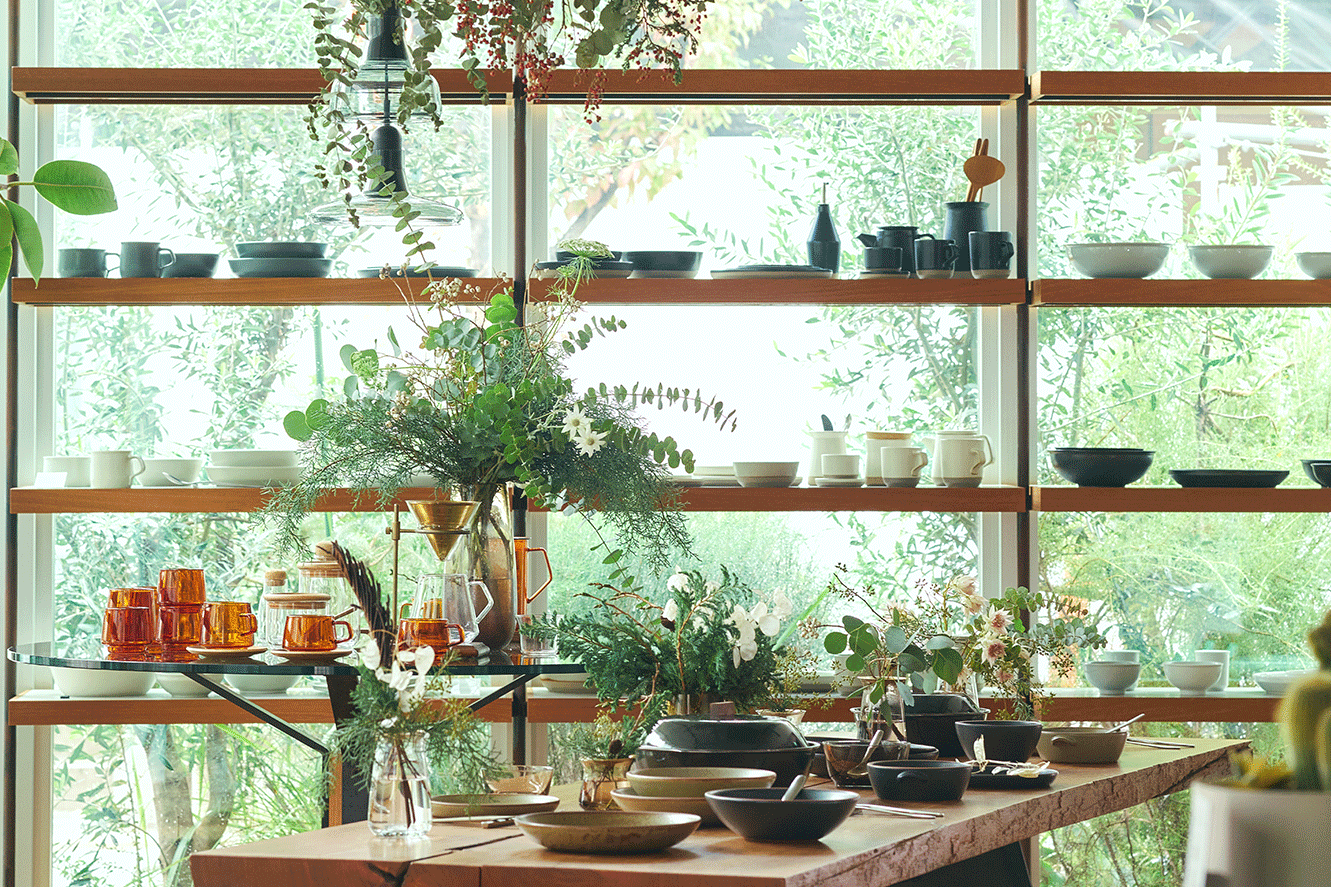 柔らかな曲線とボタニカルな質感を感じながら、あたたかな光の中で新たなプロダクトと出会う。KINTO STORE Tokyoにはそのような喜びがあります。