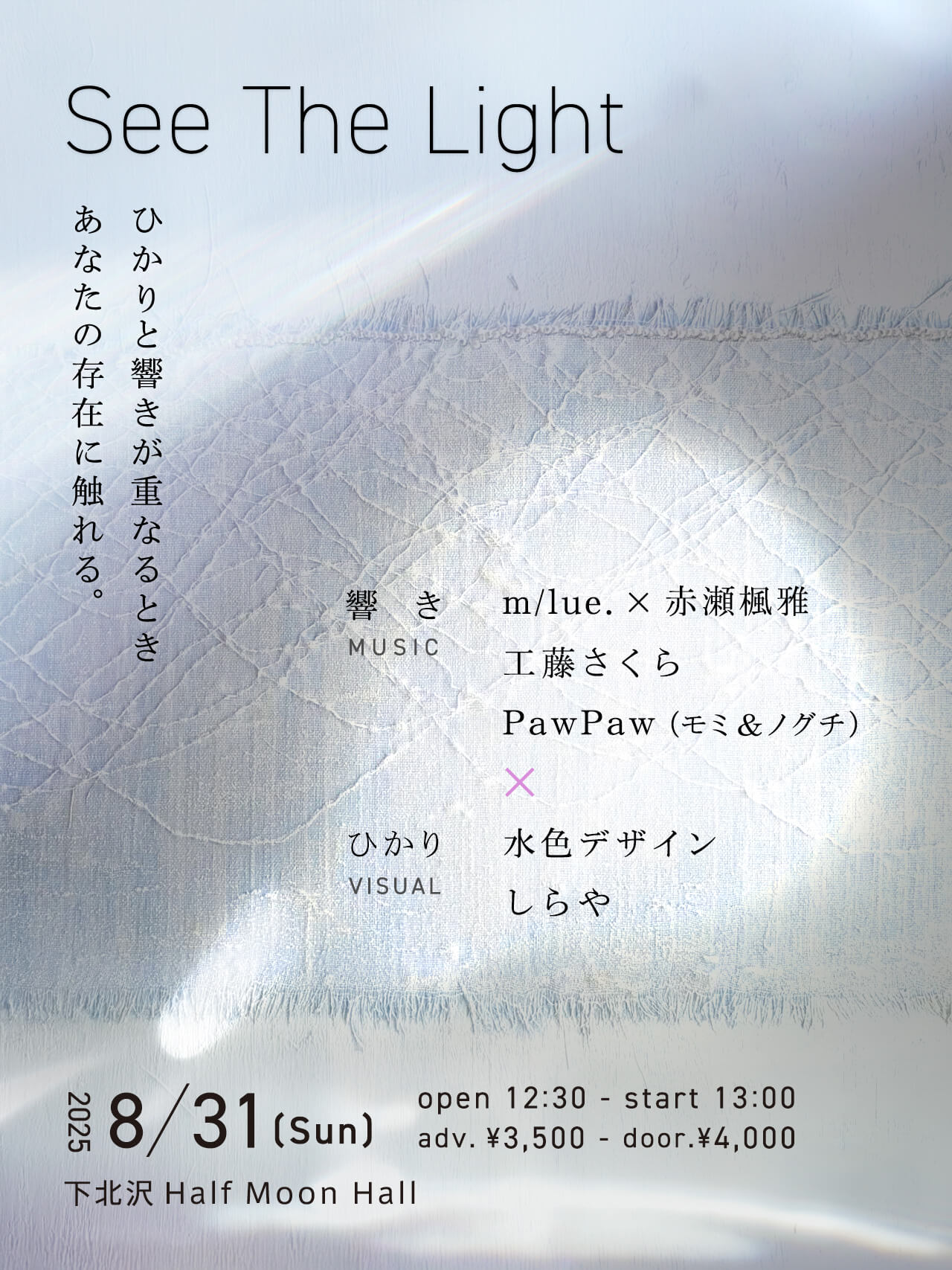 「響き」と「ひかり」のコラボレーションライブ。m/lue.や工藤さくらが出演する『See The Light』が8/31東京・下北沢で開催