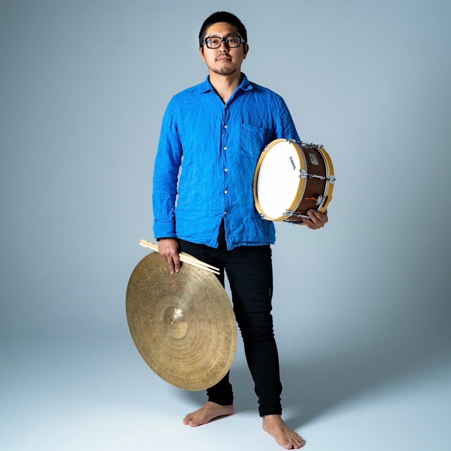 プロフィール:伊豆諸島最南端の孤島 青ヶ島出身。幼い頃から島の伝統太鼓や島唄や踊りに慣れ親しみ育つ。15歳から独学でドラムを叩き始め、上京後ドラマーとして活動を開始。アフリカを代表するカメルーンのドラマーBrice wassyの演奏に衝撃を受けBriceと弟のVincentに師事。現地カメルーンに渡りトラディショナルのリズムをエッセンスとしたドラミングを学ぶ。アジアの伝統音楽家とも交流が深く、SUNDRUMの活動を通じて韓国や台湾やマレーシアなどの伝統音楽家とのコラボレーション作品も制作。また『青ヶ島還住太鼓』とその先祖であり400年から古くは800年の歴史を持つと言われる『八丈太鼓』の様々なリズムを叩き分けることのできる伝統太鼓の名手であり、国内のみならず海外でも多くのライブやワークショップを通じて島の伝統音楽の魅力を発信している。
